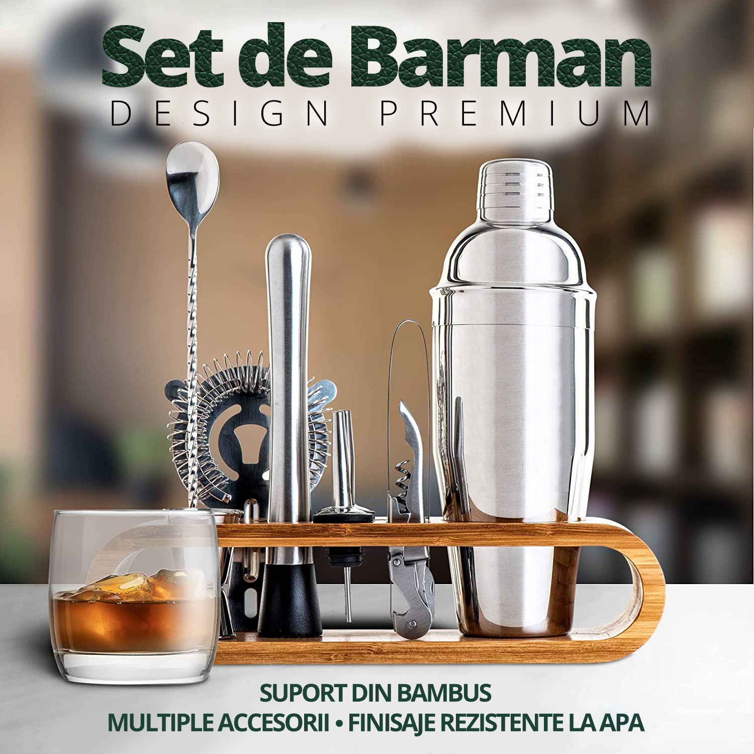 · Set barman pentru cocktailuri. Iti va oferi puterea de a prepara cocktailuri impresionante pentru oaspetii tai. Indiferent daca esti un barman amator sau un guru profesionist al mixarii de cocktailuri, fie ca ai instalat un bar acasa sau la serviciu, acest set de bar este o modalitate geniala de a incepe.