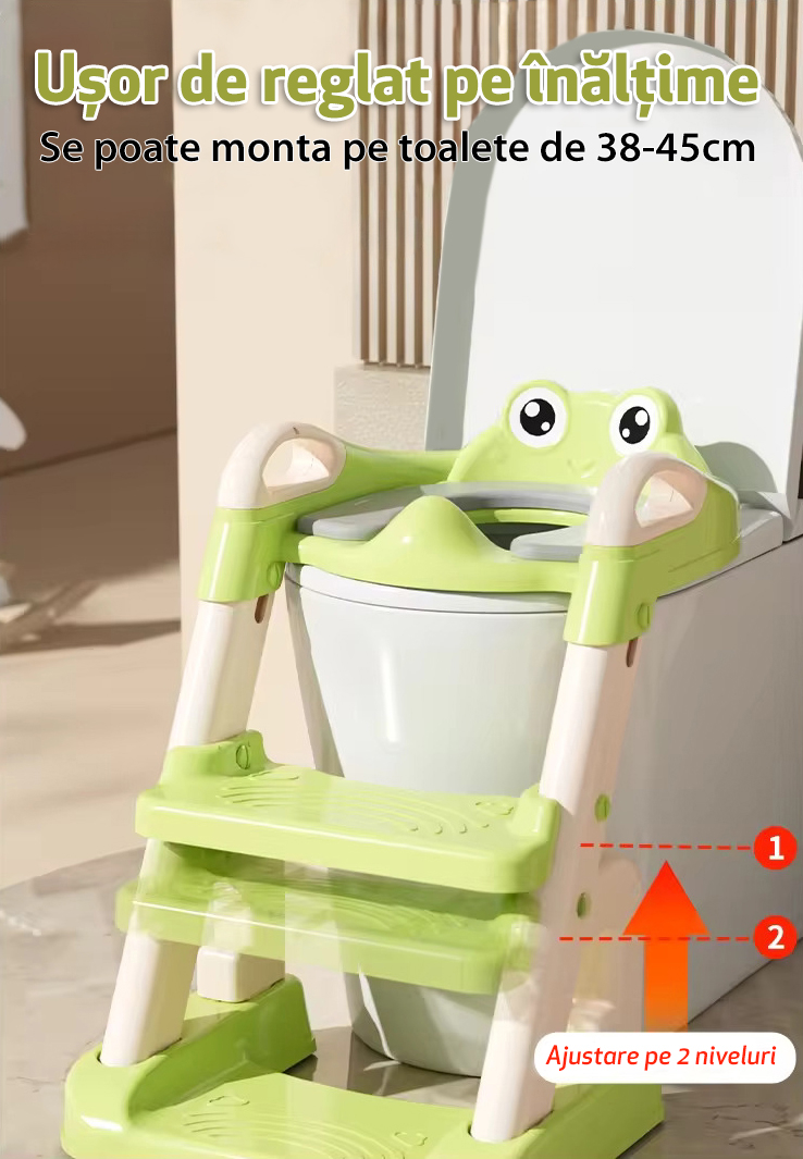 - Multifunctional: Produsul serveste atat ca reductor WC, cat si ca scaunel inaltator, oferind versatilitate si multiple optiuni de utilizare.