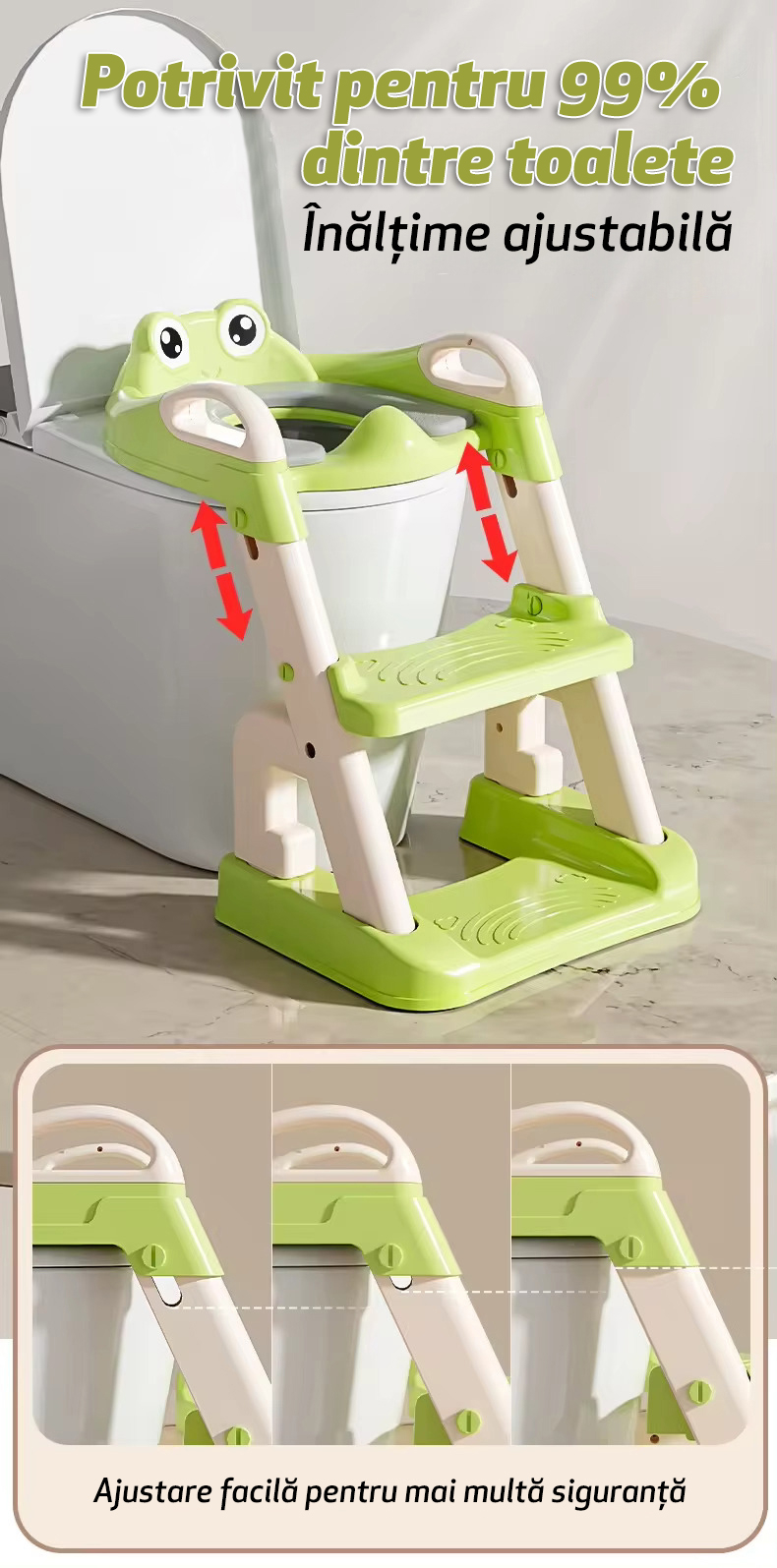 - Inaltime Ajustabila: Scara reductorului este reglabila pe inaltime, adaptandu-se nevoilor diferite ale copiilor pe masura ce cresc.